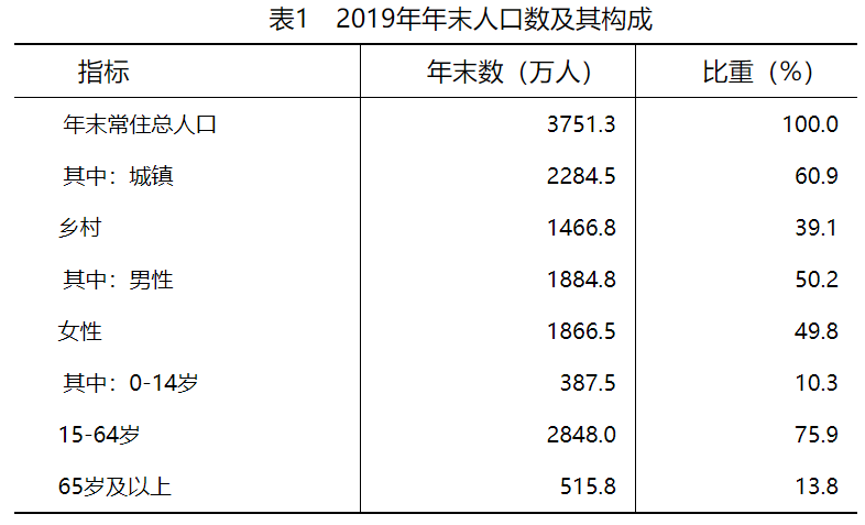 2019年末2020初常住人口。据人口抽样调查推算,全省人口出生率为5.73‰,死亡率为6.74‰,人口自然增长率为-1.01‰。年末常住总人口3751.3万人,比上年减少21.8万人。其中,城镇人口2284.5万人,乡村人口1466.8万人。常住人口城镇化率为60.9%,比上年提高0.8个百分点。0—14岁人口占全省总人口的比重为10.3%,65岁及以上人口占全省总人口的比重为13.8%。户籍人口3554.5万人。(黑龙江统计年鉴2020)